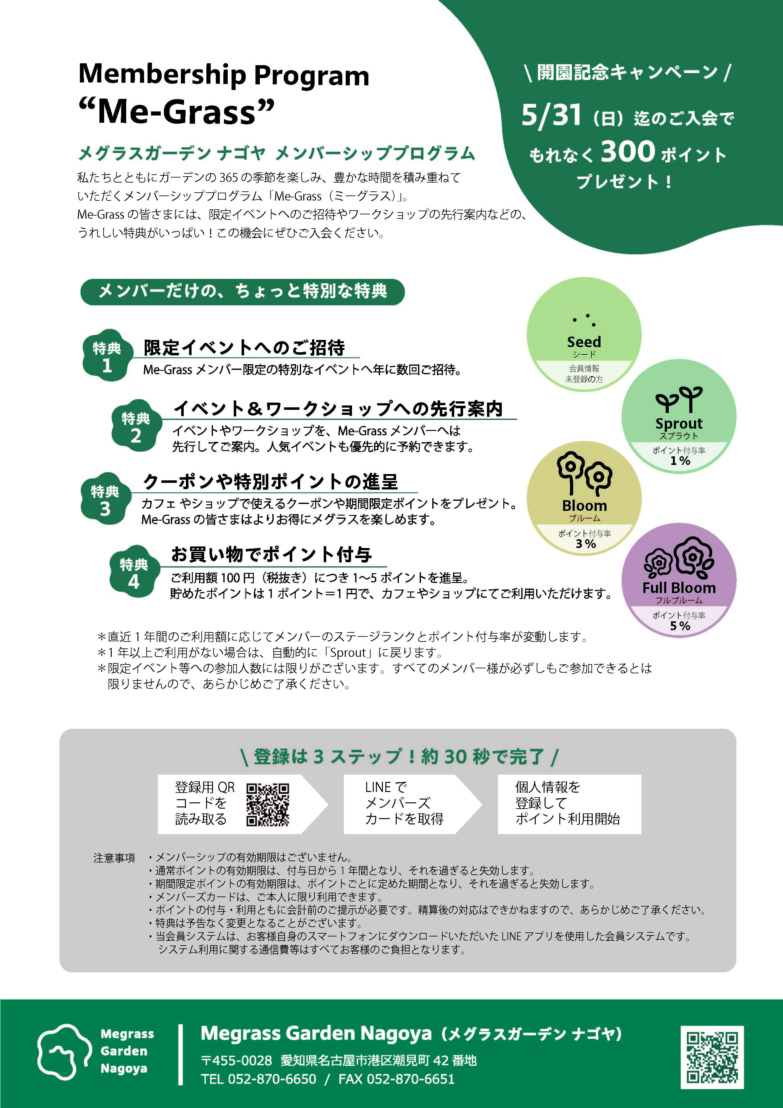 メグラスガーデン ナゴヤのメンバーシッププログラム「Me-Grass(ミーグラス)」がはじまります。
