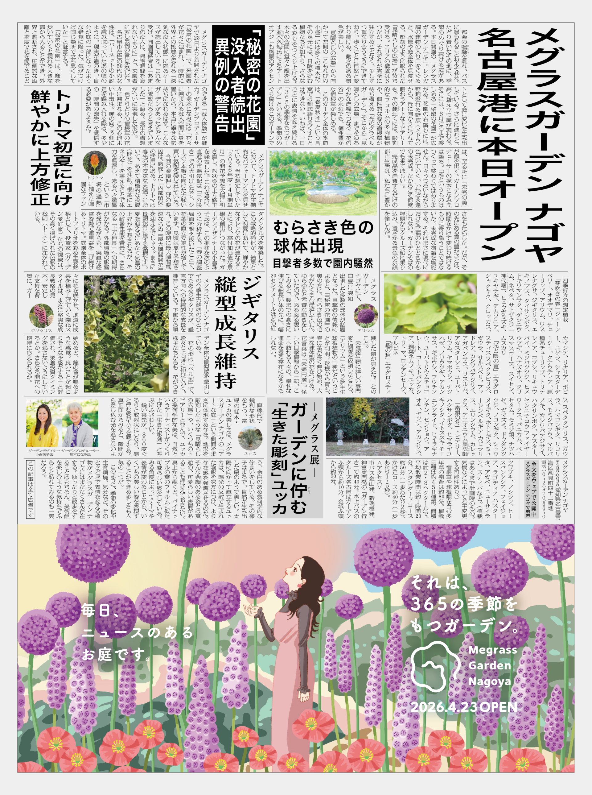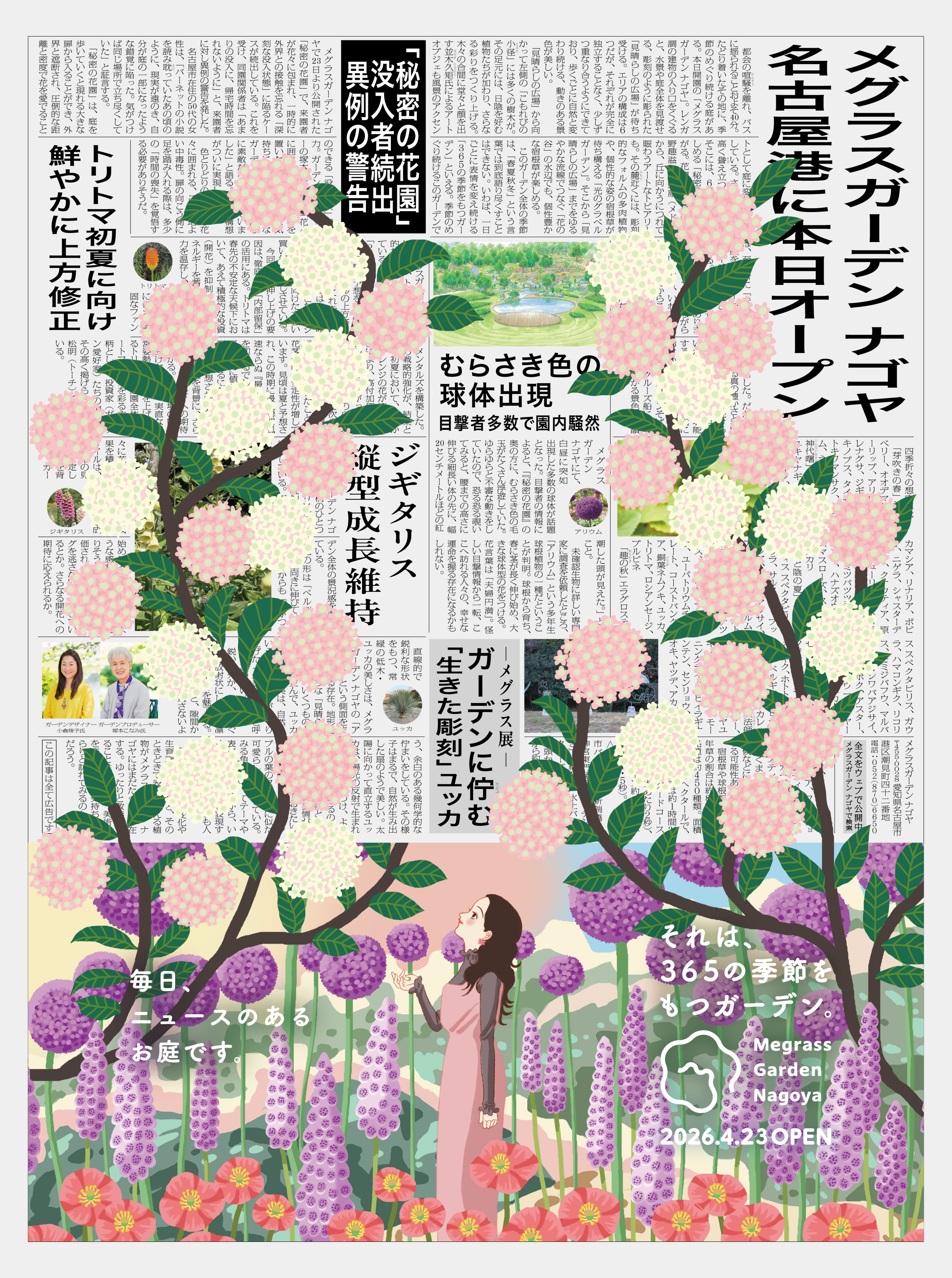 今回の新聞広告では、「それは、365の季節をもつガーデン。」を新聞ならではの世界観で表現しています。ひとりでも多くの方にメグラスガーデン ナゴヤのことを知っていただけたら嬉しいです。